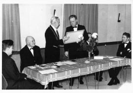 President Synnøve Riise takkar Nils Peter Pilskog.